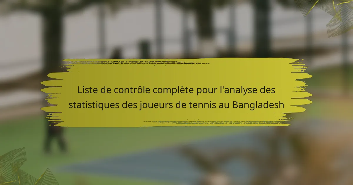 Analyser les statistiques des joueurs de tennis au Bangladesh nécessite une approche complète, axée sur des indicateurs clés tels que le pourcentage de victoires en