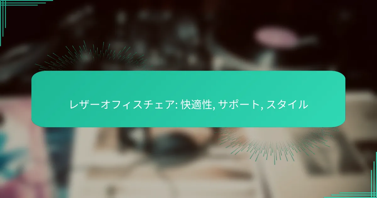 レザーオフィスチェアの快適性は、長時間の座位作業を支えるために重要です。適切なサポートとクッション性が求められ、これにより疲労感を軽減し、生産性を向上させます。