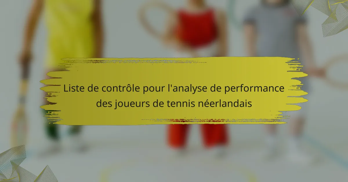 La liste de contrôle pour l’analyse de performance des joueurs de tennis néerlandais englobe une gamme de métriques critiques, y compris le pourcentage de victoires en match, la précision du service et les niveaux de condition physique. En évaluant à la fois les compétences techniques et les facteurs psychologiques, cette liste de contrôle vise à fournir une vue d’ensemble des capacités d’un joueur et des domaines à améliorer, améliorant ainsi leur performance sur le court.